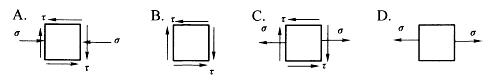 图示圆轴,固定端外圆上y=0点(图中A点)的单元体的应力状态是:![]()