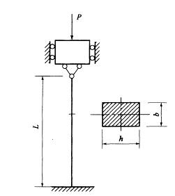 一端固定,一端为球形铰的大柔度压杆,横截面为矩形(如图所示),则该杆临界力Pcr为: