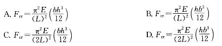 图示矩形截面细长(大柔度)压杆,弹性模量为E。该压杆的临界荷载Fcr为:![]()