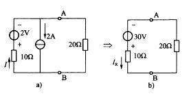 图示两电路相互等效,由图b)可知,流经10Ω电阻的电流IR = 1