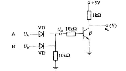 A、UB的高电平是3. 5V,(逻辑1),低电平是0. 3V(逻辑0),若该电路的输出电压U0为电压平时定为逻辑1,图所示电路应为: