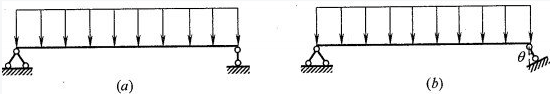 图示跨度相同但支座方向不同的a、b两简支梁,在受到大小与方向相同的均布荷载作用下,两梁跨中弯矩相同。( )