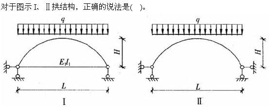 D、两者受力完全不同,且Ⅰ中拱轴力小于Ⅱ中的拱轴力" />
