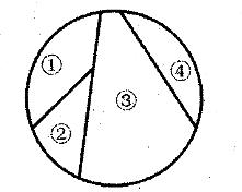 如右图所示,圆被三条线段分成四个部分。现用红、橙、黄、绿四种涂料对这四个部分上色,假设每部分必须上色,且任意相邻的两个区域不能用同一种颜色,问共有几种不同的上色方法?( ) A. 64