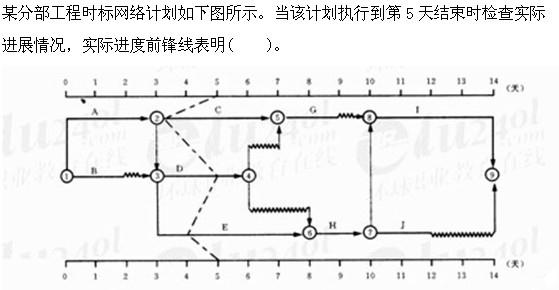 A工作C实际进度拖后,但不影响总工期