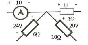 如图是某电路中的一部分,其中安培表读数为10 A,求电压U= ( )。