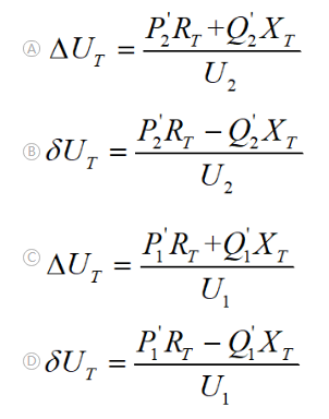 用功率和阻抗表示的电压降落横分量的表达式为( )。![]()