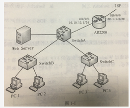 某单位现有网络拓扑结构如图1-1所示,实现用户上网的功能。该网络使用的交换机均为三层设备,用户地址分配为手动指定。
