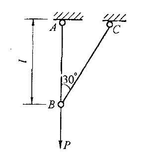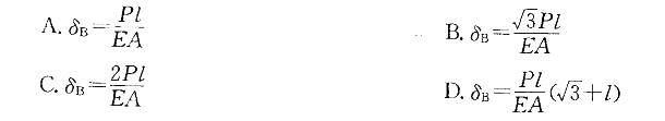 =30°。设在外力P作用下,变形微小,则B点的位移为:
