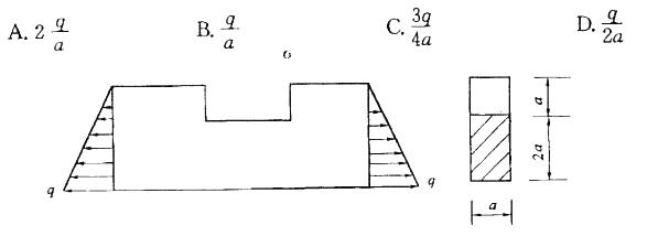 矩形截面拉杆两端受线性荷载作用,最大线荷载为q(N/m),中间开一深为a的缺口(如图所示),则其最大拉应力为:![]()