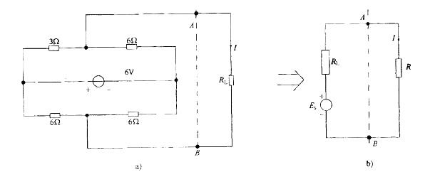 在图a)电路中有电流I时,可将图a)等效为图b),其中等效电压源电动势ES和等效电源内阻R0为: