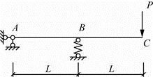 图示结构,EI为常数。结点B处弹性支撑刚度系数k=3EI/L3,C点的竖向位移为(  )。