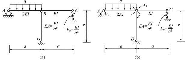 图中,用力法求解图(a)所示结构,取图(b)所示力法基本体系,则力法典型方程δ11X1+Δ1p=0中的Δ1P之值为( )。