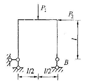 已知图示结构EI=常数,当B点水平位移为零时,P1/P2应为: