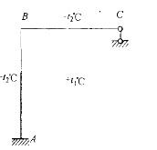 图示结构(杆件截面为矩形)在温度变化时,已知t1>t2。若规定内侧受拉的弯矩为正,则各杆端弯矩为: