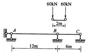 图所示梁在给定移动荷载作用下,B支座反力的最大值为( )。