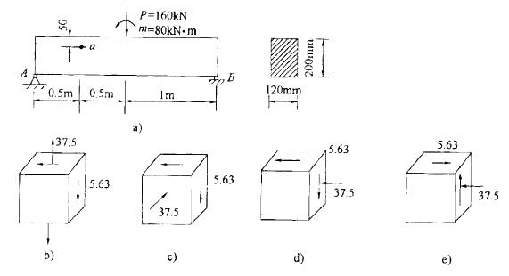 如图所示构件上a点处,原始单元体的应力状态应为下列何图所示?