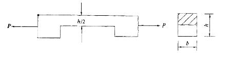 矩形截面拉杆中间开一深为h/2的缺口,与不开缺口时的拉杆相比(不计应力集中影响),杆内最大正应力是不开口时正应力的多少倍?