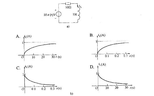 电路如图a)所示,iL(t)的波形为图b)中的哪个图所示?