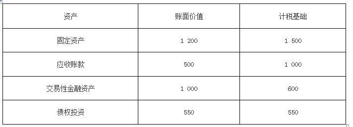 甲公司2×17年1月1日各项资产的账面价值及计税基础如下表所示: 单位:万元2×17年甲公司发生如下与之有关的经济业务: (1)2×17年12月31日固定资产账面价值为1 080万元,其可收回金额为1 000万元。(税法预计该固定资产从2×17年年初开始尚可使用15年,年限平均法计提折旧,净残值为零); (2)应收账款当期增加1 000万元,年末计提坏账准备200万元; (3)交易性金融资产期末公允价值上升500万元; (4)债权投资期末摊余成本为400万元(包括计提债权投资减值准备50万元)。 要求:分析各项资产2×17年12月31日的账面价值和计税基础,并说明所形成暂时性差异。