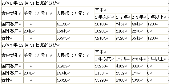 甲公司主要从事汽车轮胎的生产和销售,其销售收入主要来源于国内销售和出口销售。ABC会计师事务所负责甲公司20×8年度财务报表审计,并委派A注册会计师担任项目负责人。 要求: 1.针对资料二,结合资料一,假定不考虑其他条件,指出资料二中应收账款账龄分析表存在哪些不当之处,并简单说明理由。 资料一: (1)甲公司的收入确认政策为:对于国内销售,在将产品交付客户并取得客户签字的收货确认单时确认收入;对于出口销售,在相关产品装船并取得装船单时确认收入。 (2)在甲公司的会计信息系统中,国内客户和国外客户的编号分别以D和E开头。 (3)20×8年12月31日,中国人民银行公布的人民币对美元汇率为1美元=6.8元人民币。