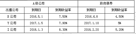 2012年1月1日,公司收集了当时上市交易的3种A级公司债券及与这些上市债券到期日接近的政府债券的相关信息如下: