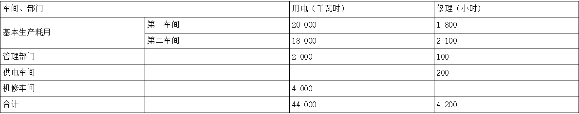 某企业设有供电和机修两个辅助生产车间,根据其本月份辅助生产明细账知悉:供电车间发生的待分配费用为35 200元,机修车间发生的待分配费用为33 600元,两车间本月提供劳务情况如表所示: