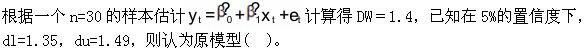 D无法判断是否存在一阶自相关。