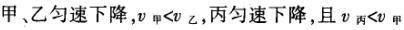 甲、乙、丙三人各乘一架直升飞机,甲看到楼房匀速上升,乙看到甲匀速上升,丙看到乙匀速下降,甲看到丙匀速上升。那么,甲、乙和丙相对于地面的运动情况不可能是:( )