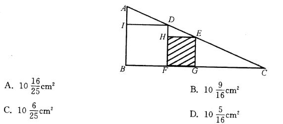 如图所示,ΔABC是直角三角形,四边形和四边形都是正方形,已知4cm,问正方形HFGF的面积是多少?( )![]()