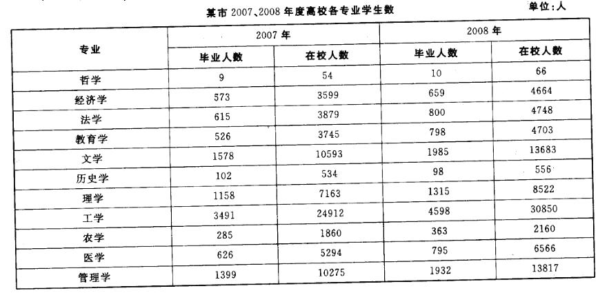 A与2007年相比,2008年各专业毕业人数都有不同程度的上升