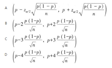 在大样本条件下,若np≥5,且n(1-p)≥5,样本比例在置信水平(1-a)下的置信区间为( )。![]()