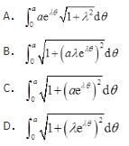 曲线r=ae^λθ(λ>0),从θ=0到θ=a一段的弧长s=( )。![]()