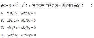 设z=φ(x2-y2),其中φ有连续导数,则函数z满足( )。![]()