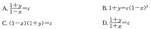 微分方程(1+y)dx-(1-x)dy=0的通解是(c为任意常数):![]()