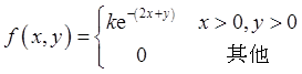 二维连续型随机变量(X,Y)的概率密度为,则系数k=( )。