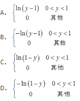 设数X在区间(0,1)上随机的取值,当观察到X=x(0<x<1)时,数Y在区间(x,1)上随机取值,则fY(y)=( )。![]()