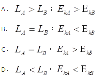 人造卫星绕地球运动,轨道为椭圆,轨道近地点和远地点分别为A和B。用L和Ek分别表示卫星对地心的角动量和动能瞬时值,则( )。![]()