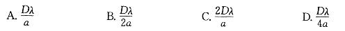 以双缝干涉实验中,波长为λ的单色平行光垂直入射到缝间距为a的双缝上,屏到双缝的距离为D,则某一条明纹与其相邻的一条暗纹的间距为:![]()