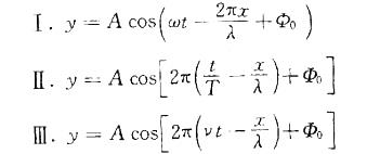 一平面简谐波沿x轴正向传播,已知波长λ,频率v,角频率w,周期T,初相Φ0,则下列表示波动方程的式子中,哪几个是正确的?