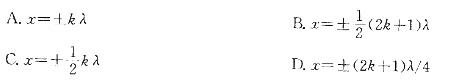 有两列沿相反方向传播的相干波,其波动方程分别为y1=Acos2π(vt-x/λ)和y2=Acos2π(vt+x/λ)叠加后形成驻波,其波腹位置的坐标为: