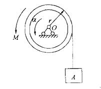 图示鼓轮半径r=3.65m,对转轴O的转动惯量JO= 0.92kg * m2;绕在鼓轮上的绳端挂有质量m=30kg的物体A。不计系统质量与摩擦,欲使鼓轮以角加速度α=37.8rad/s2转动来提升重物,需对鼓轮作用的转矩M的大小是: