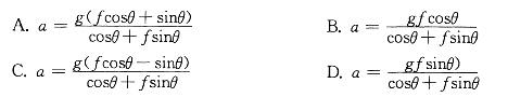 质量为m的物块A,置于与水平面成θ角的斜面B上,如图所示。A与B间的摩擦系数为f,为保持A与B —起以加速度a水平向右运动,则所需的加速度a至少是:![]()