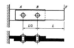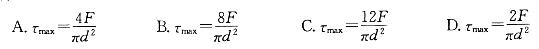 钢板用两个铆钉固定在支座上,铆钉直径为d在图示载荷作用于,铆钉的最大切应力是:![]()