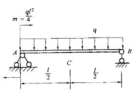 已知简支梁受如图所示荷载,则跨中点C截面上的弯矩为:![]()