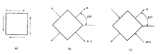 三种平面应力状态如图所示(图中用n和s分别表示正应力和剪应力),它们之间的关系是:
