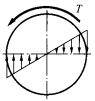 下面选项中受扭圆轴横截面上的切应力分布图中,正确的切应力分布应是(  )。