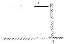 垂直放置的矩形平板,一侧挡水,该平板由置于上、下边缘的拉杆固定,则拉力之比T1/T2应为: A. 1/4