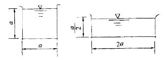 方形和矩形断面的渠道断面1及2如图所示。若两渠道的过水断面面积相等,底坡i及壁面的粗糙系数n皆相同,均匀流的流量关系是: