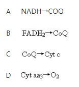电子传递链中氧化与磷酸化偶联的部位是( )。![]()